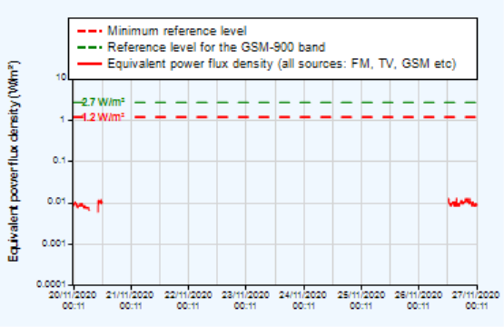 The chart below shows the levels of the power flux density for the overall frequency range measured